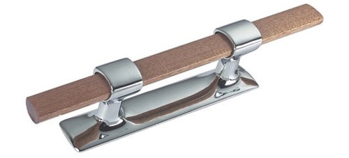 Elegante Belegklampe aus verchromtem Messing mit edlem Mahagonisteg – ideal zur sicheren Befestigung von Leinen beim Anlegen, Festmachen oder Fixieren von Fendern. Robuste Ausführung mit M8 Gewinde inklusive Mutter. Maritime Qualität für Segel- und Motorboote.