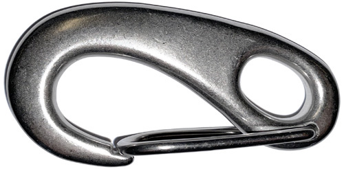 Hochwertiger Niro-Karabinerhaken aus AISI 316 Edelstahl für den maritimen Einsatz. Der schmale Federbügel sorgt für eine besonders große Maulweite und ermöglicht schnelles, sicheres Ein- und Aushaken von Leinen und Ausrüstung – auch unter hoher Belastung.