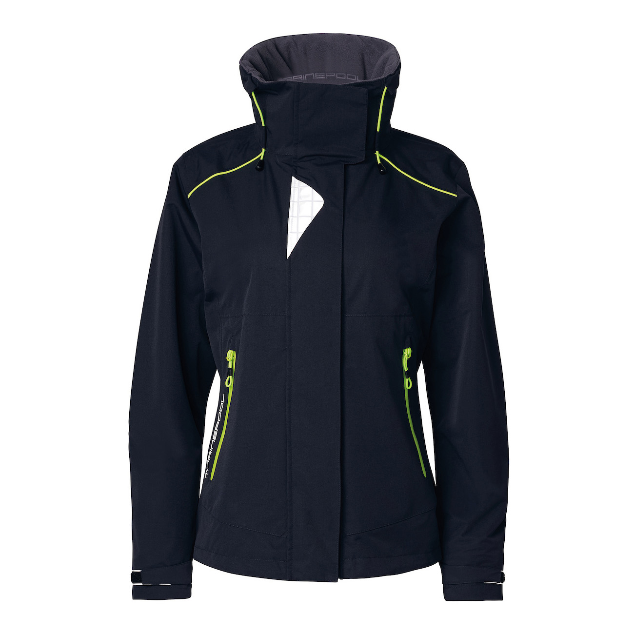 Moderne Damen-Segeljacke mit sportlichem Schnitt und neonfarbigen Akzenten. Wind- und wasserdicht, atmungsaktiv und mit hochwertigen 3M™ Reflektoren für optimale Sichtbarkeit an Bord. Verstaubare Kapuze, gefütterter Kragen, verstellbare Manschetten und wasserdichte YKK®-Reißverschlüsse sorgen für maximalen Komfort und zuverlässigen Wetterschutz bei jedem Törn.