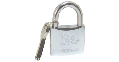 Seewasserbeständiges Vorhangschloss „SeaLock“ mit robustem Niro-Bügel und verchromtem Messingkörper. Ideal für den Einsatz im maritimen Umfeld. Die automatische Rückstellung des Schlüssels sorgt für komfortable Handhabung und zuverlässige Sicherung von Stauräumen, Boxen oder Ausrüstung.