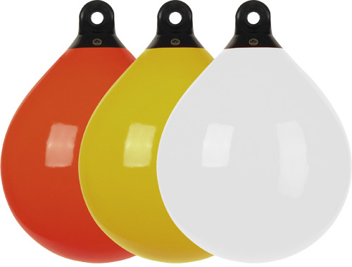 Robuster Kugelfender Balloon von Dan-Fender aus strapazierfähigem PVC für zuverlässigen Schutz beim Anlegen und Manövrieren. Aufblasbar mit Ventil, in Weiß, Schwarz, Signalrot oder Gelb erhältlich. Ideal für Segel- und Motorboote, in verschiedenen Größen verfügbar.