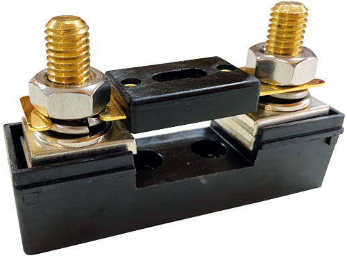 Robuster Sicherungshalter mit passender Sicherung von 80 bis 500 A für zuverlässige Stromabsicherung an Bord. Hochwertige Ausführung mit stabilem M10 Schraubanschluss für sichere Verbindung und einfache Montage. Ideal für leistungsstarke elektrische Anlagen im Marinebereich.