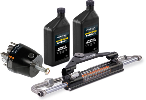 Hydraulisches Lenkungsset für Außenbordmotoren bis 150 PS. Das Baystar System sorgt für präzises und komfortables Steuern bei Sport- und Schlauchbooten. Set inkl. Steuerpumpe, Zylinder und 1 L SeaStar Hydrauliköl. Zuverlässige Lösung für eine ruhige und kontrollierte Steuerung.
