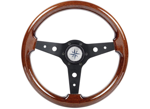 Edles Steuerrad im klassischen Retro-Design mit hochwertiger Mahagonikrone und drei schwarz eloxierten Speichen. Die Kombination aus warmem Holz und modernem Aluminium sorgt für eine stilvolle Optik und zuverlässige Kontrolle am Steuerstand – ideal für Segel- und Motorboote.