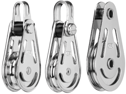 Robuster Drahtseilblock von HS Sprenger für vielseitige Anwendungen an Bord. Mit rostfreiem Edelstahlgehäuse und vernickelter Messingrolle für hohe Belastbarkeit und langlebige Performance im maritimen Einsatz. Erhältlich mit Bügel, Schäkel oder Hohlachse.