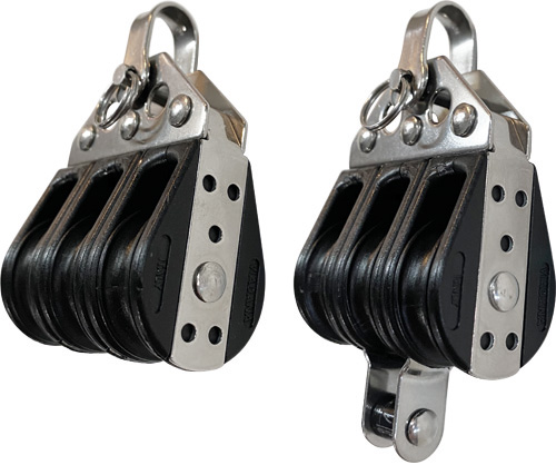 Robuster Dreifachblock von Viadana für den Einsatz im Segel- und Decksbereich. Leichtes Kunststoffgehäuse, stabiles Edelstahl-Lastgehäuse und leichtlaufende Kugellagerrollen sorgen für optimale Kraftübertragung, hohe Bruchlast und zuverlässige Performance bei Trimmanövern.