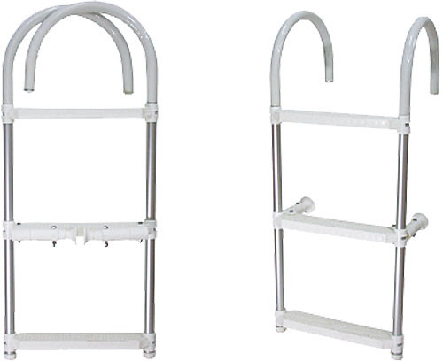Kompakte und besonders leichte Badeleiter aus Aluminium mit stabilen Kunststofftritten. Die klappbaren Abstandshalter sorgen für sicheren Halt am Heck, während die einschwenkbaren Bügel eine sehr flache und platzsparende Verstauung ermöglichen.