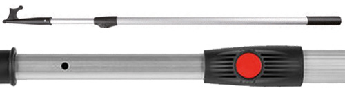 Teleskop-Bootshaken aus seewasserbeständigem, silber eloxiertem Aluminium für sicheres Manövrieren und Anlegen. Mehrstufige Arretierung mit rotem Druckknopf verhindert unbeabsichtigtes Zusammenschieben. Länge verstellbar von 1200 bis 2200 mm, Schaftdurchmesser 32 mm.