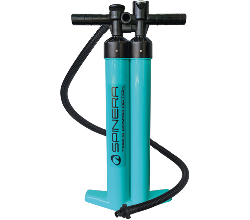 Leistungsstarke Triple Action Handpumpe von Spinera für schnelles und effizientes Aufpumpen von Schlauchbooten, SUP und aufblasbarer Wassersportausrüstung. Umschaltbare 3-2-1 Hubfunktion sorgt für schnellen Luftaufbau bis 30 psi und ermöglicht präzises Nachpumpen bei hohem Druck.