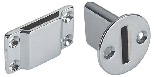 Halterungen für Bügelgestänge zur stabilen Abspannung von Persenningen bei offenen Booten. Flexibel anpassbar für verschiedene Montagesituationen. Hochwertige Endstücke aus verchromtem Messing sorgen für langlebige, korrosionsbeständige Befestigung an Bord.