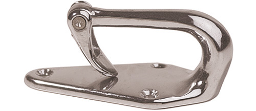 Stabiler Wasserskihaken aus verchromtem Messing zur sicheren Befestigung von Wasserski-Leinen an Bord. Die integrierte Sperrklappe verhindert ein unbeabsichtigtes Aushängen. Robuste Ausführung mit drei Montagebohrungen – ideal für den Einsatz auf Deck bei Wassersport und schnellen Törns.