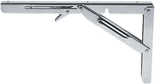 Robuste Tisch-Klappmechanik von Zwaardvis für klappbare Bordtische. Gefertigt aus hochwertigem Edelstahl SS316, ideal für den Einsatz im maritimen Umfeld. Mit praktischem Sperr-Riegel für sicheren Halt während der Fahrt. Montage mit 6-mm-Schrauben.