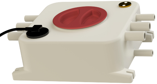 Duschabsaugeinheit 4000 mit Grauwassertank und 6 Einlassanschlüssen (4x 25 mm, 2x 19 mm) sowie 2 Auslässen (19 mm). Integrierter Niveauschalter mit verzögerter Abschaltung sorgt für eine nahezu vollständige Entleerung von Dusch- und Abwasserleitungen an Bord.
