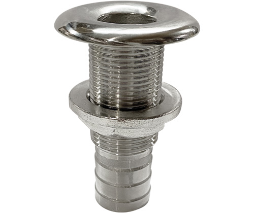 Robuster Niro Borddurchlass mit Schlauchanschluss für den Einsatz in der Nautik und im Wassersport. Gefertigt aus hochwertigem AISI 316 Edelstahl für maximale Korrosionsbeständigkeit im Salzwasser. Erhältlich in verschiedenen Ausführungen von 1/2 bis 6/4 Zoll Gewinde.