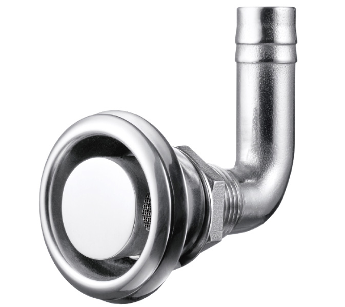 Hochwertige Tankentlüftung aus Edelstahl 316 mit 304 Abdeckung für bündige Rumpfmontage. Hohe Luftdurchlässigkeit sorgt für sicheren Druckausgleich im Kraftstoffsystem. Mit integriertem Flammensieb und Barb-Up-Installation gegen Wassereintritt. Anschluss Ø 16 mm, inkl. 90° Bogen.