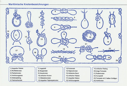 Praktischer Aufkleber mit den wichtigsten Seemannsknoten und Bezeichnungen. Die selbstklebende Kunststofffolie ist wasserfest, robust und ideal für Bordwand, Kajüte oder Werkstatt. Perfekt zum Lernen, Auffrischen und schnellen Nachschlagen der gängigsten Knoten im Wassersport.