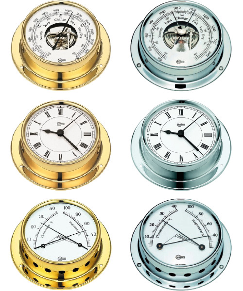 Die Instrumente der Serie Tempo von Barigo überzeugen mit maritimer Präzision und edlem Design. Das hochglanzpolierte oder verchromte Messinggehäuse verleiht Uhr, Barometer oder Comfortinstrument mit Thermometer und Hygrometer eine hochwertige Optik für Kajüte, Salon oder Navigation.