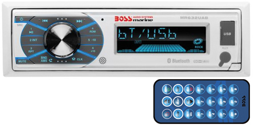 Der marinefähige Single-DIN Multimedia-Player MR632UAB mit Bluetooth, USB und FM/AM bietet kabelloses Audio-Streaming, Freisprecheinrichtung und Smartphone-Kompatibilität. Mit Vorverstärkerausgängen, abnehmbarer Front und Fernbedienung ideal für den Einsatz an Bord.