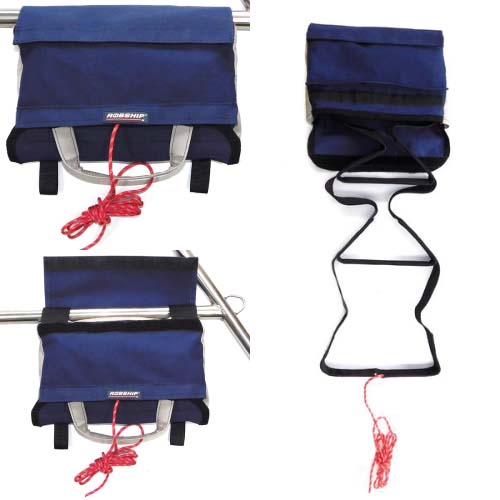 Die Notleiter RS ist eine sehr kompakte und leichte Bergungsleiter für den Einsatz an Bord. Sie lässt sich werkzeuglos an der Reling montieren, ist platzsparend in einer Tasche verstaut und kann im Notfall durch Ziehen an der Leine direkt vom Wasser aus ausgelöst werden.