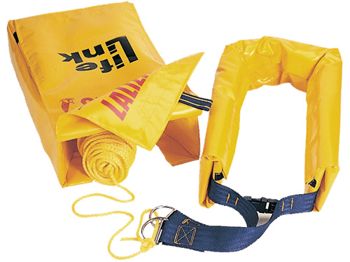 Rettungsschlinge Lifelink zur schnellen Bergung von Personen über Bord (MOB). In einer PVC-Tasche am Heckkorb montiert, mit 36 m schwimmender Leine, robuster PVC-Schlinge und Sicherheitsclip. Hohe Bruchlast und zuverlässige Sicherheit an Bord von Boot, Segelboot und Yacht.