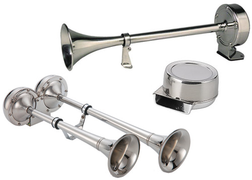 Hochwertiges Bootshorn aus Chrom mit modernem Design für Segel- und Motorboote. Gefertigt aus robustem Niro-Edelstahl, erzeugt es einen kraftvollen, akustisch dunklen Vollton. Ideal als zuverlässiges Signalhorn für die Bordelektrik mit 12 V.