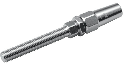 SB Gewindeterminal zur Selbstmontage für Drahtseile im maritimen Einsatz. Gefertigt aus rostfreiem V4A-Edelstahl (AISI 316), ideal für Relingdrähte. Ermöglicht präzise Spannungsjustierung durch Verschrauben. Montage mit Konus-System – kein Spezialwerkzeug nötig.
